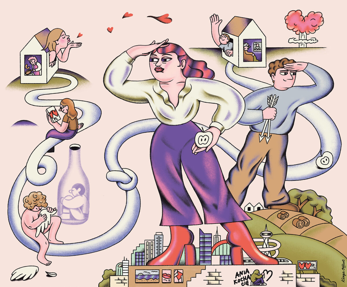 Editorial illustration for an article in Znak magazine exploring modern relationships, dating, and the experience of being single.